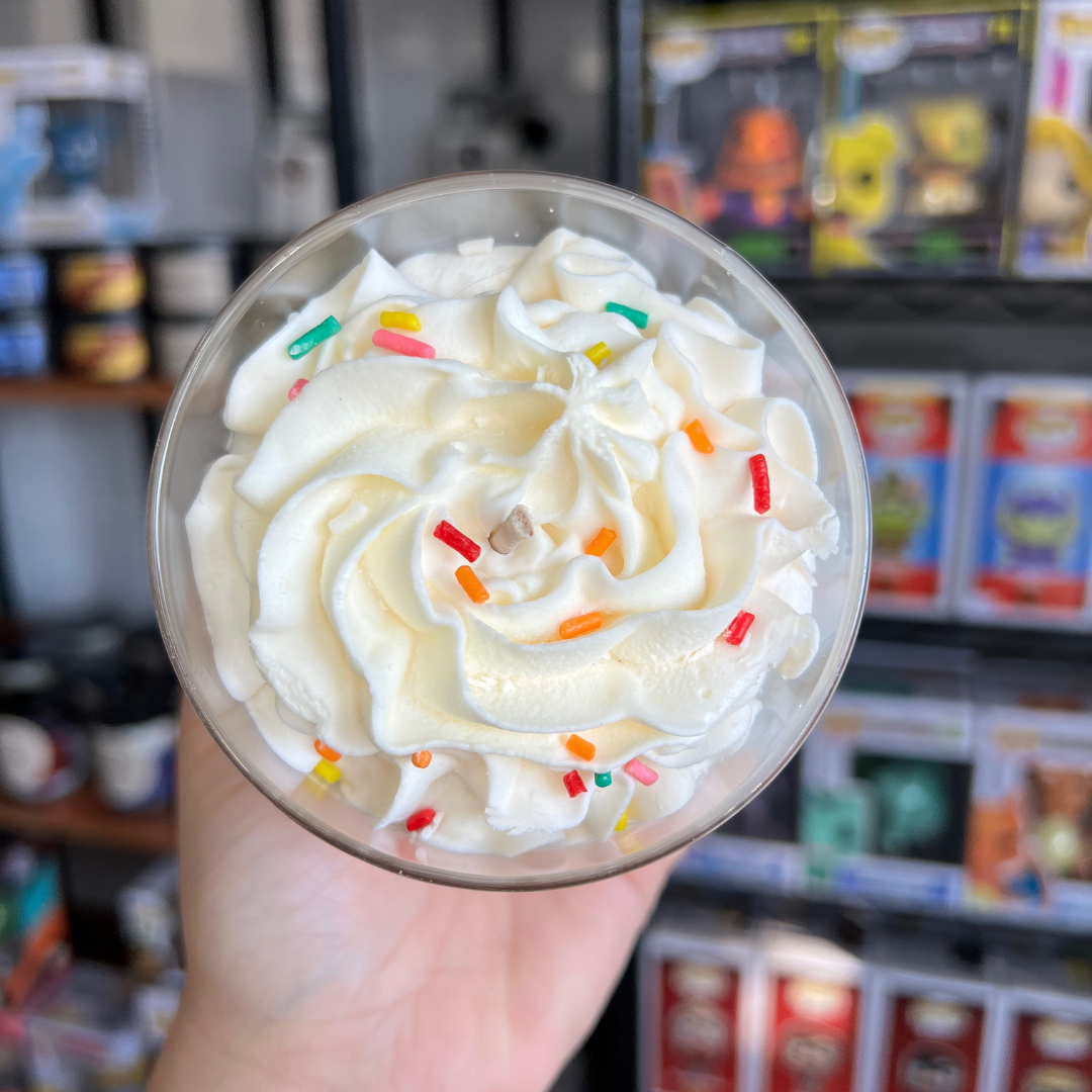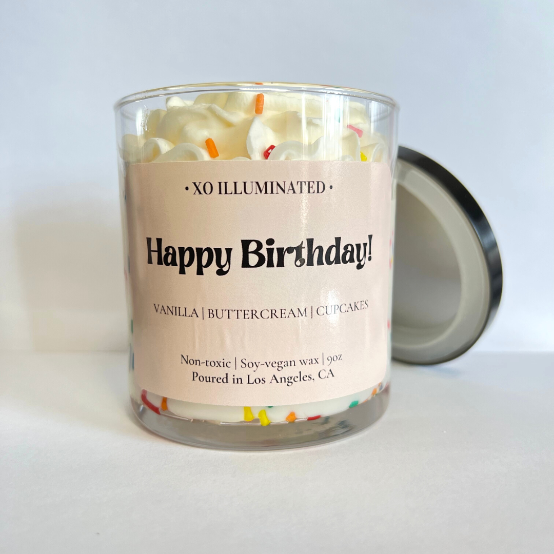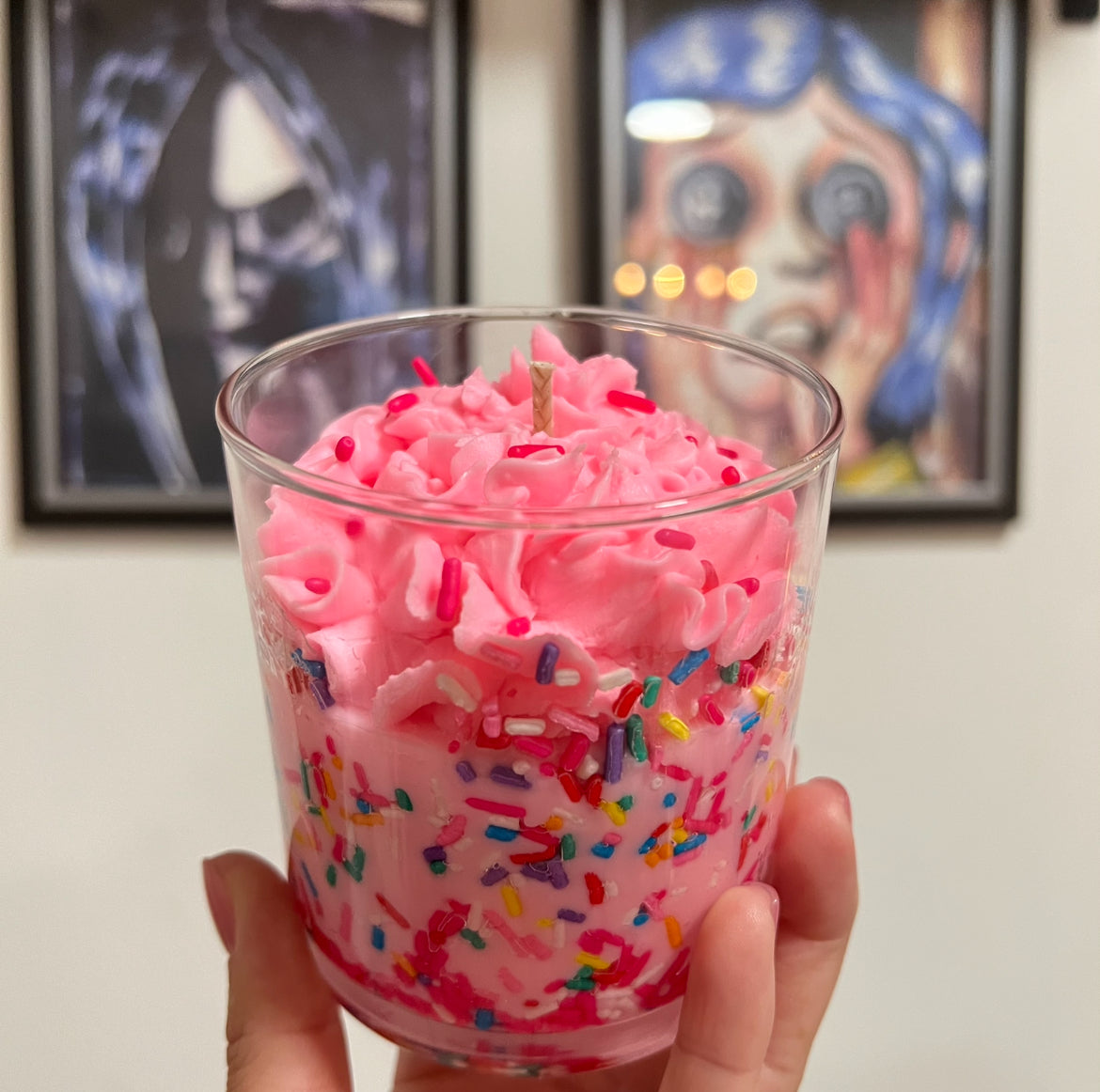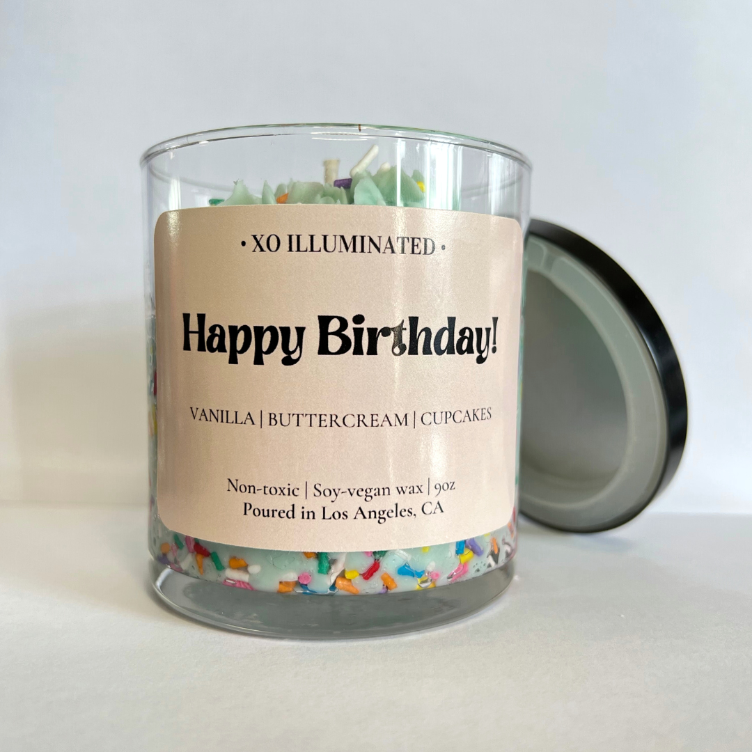 - Some of our candles contain decorative items. Please remove any decorations like dice and large sprinkles prior to burning