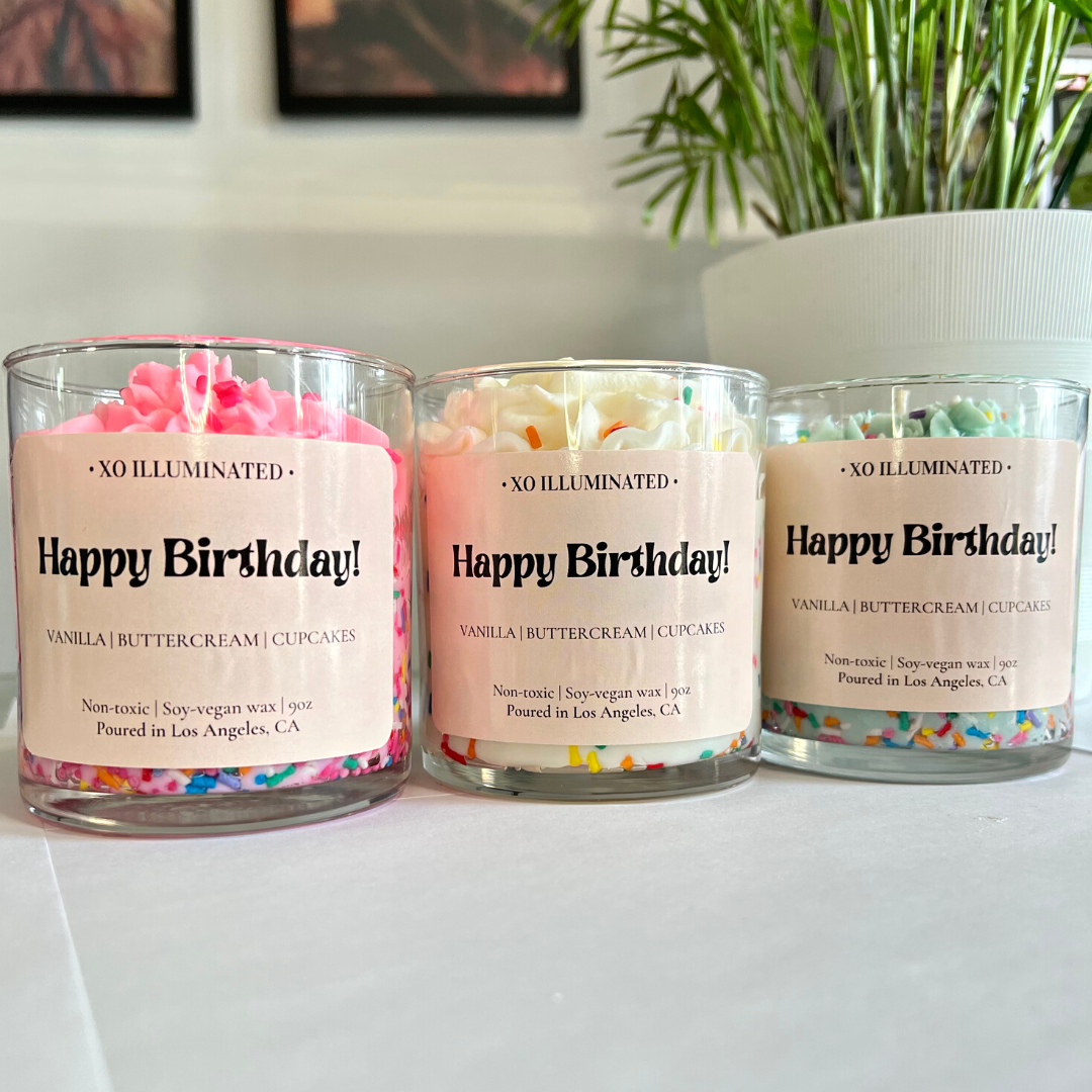 Introducing our Birthday Candle! This candle smells like a Warm Vanilla Cupcake and is crafted with notes of vanilla, cream, and warm sugar! Our candle comes in 3 different colors - agua, pink, and cream! All candles are made with whipped wax to create a cupcake look on top!