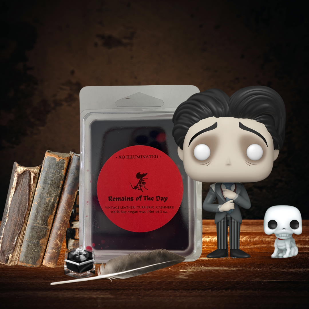 Our newest Spooktacular wax melts have arrived! They are inspired by Tim Burton's The Corpse Bride and are the perfect gift for any spooky basket or Halloween gift! They smells like vintage leather and turmeric and is crafted with notes of sandalwood, oakmoss, amber, and cashmere.