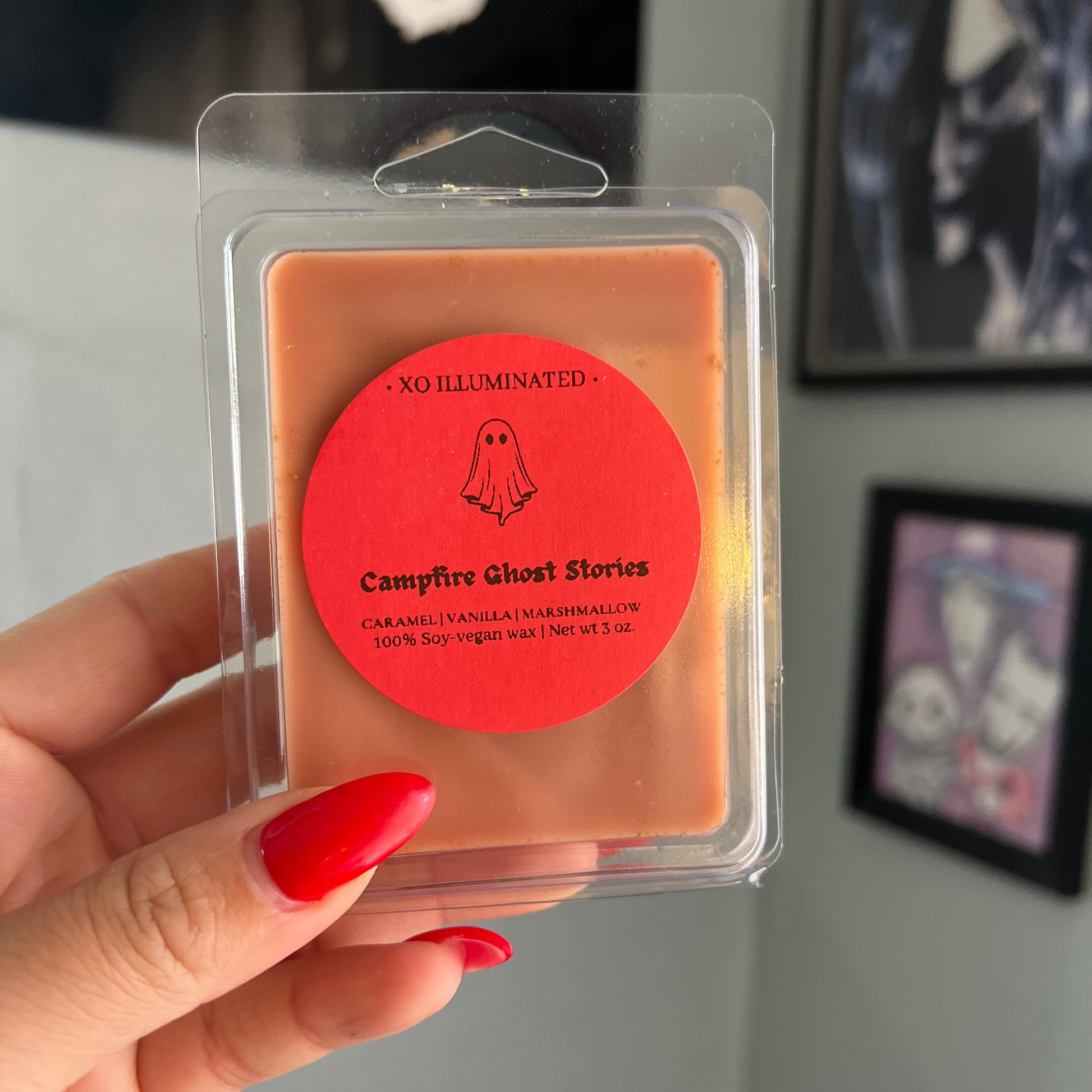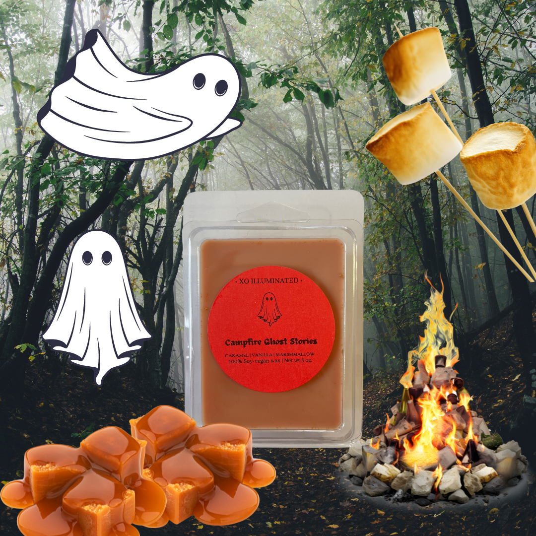 Get your hands on this LIMITED EDITION Campfire Ghost Stories wax melts. These melts smell like fire roasted marshmallows with a hint of creamy vanilla and caramel! They are crafted with notes of vanilla, brown sugar, caramel, butterscotch, cinnamon, marshmallow, and amber.