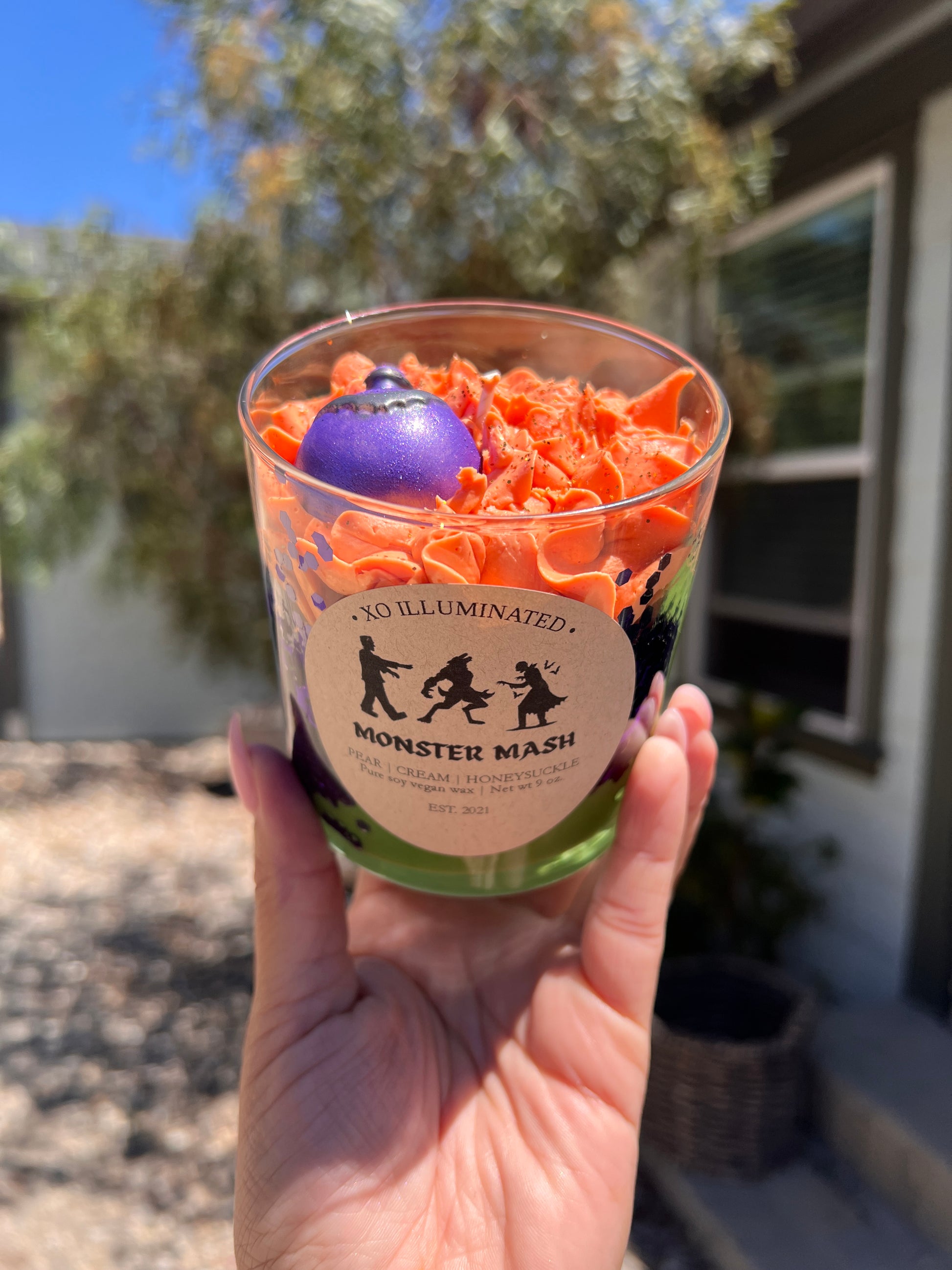 New to our 2025 Spooktacular Candle Collection, get your hands on the Monster Mash candle inspired by all things monster. This candle features one of our newest scents and smell like Pear Mascarpone. It is crafted with notes of: