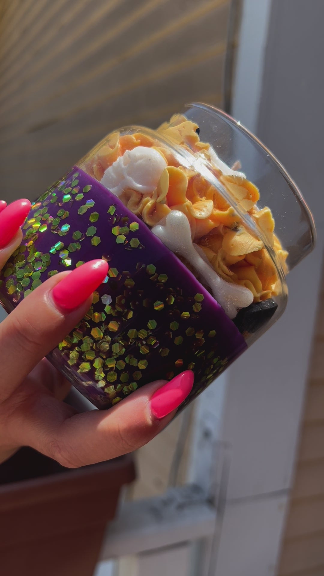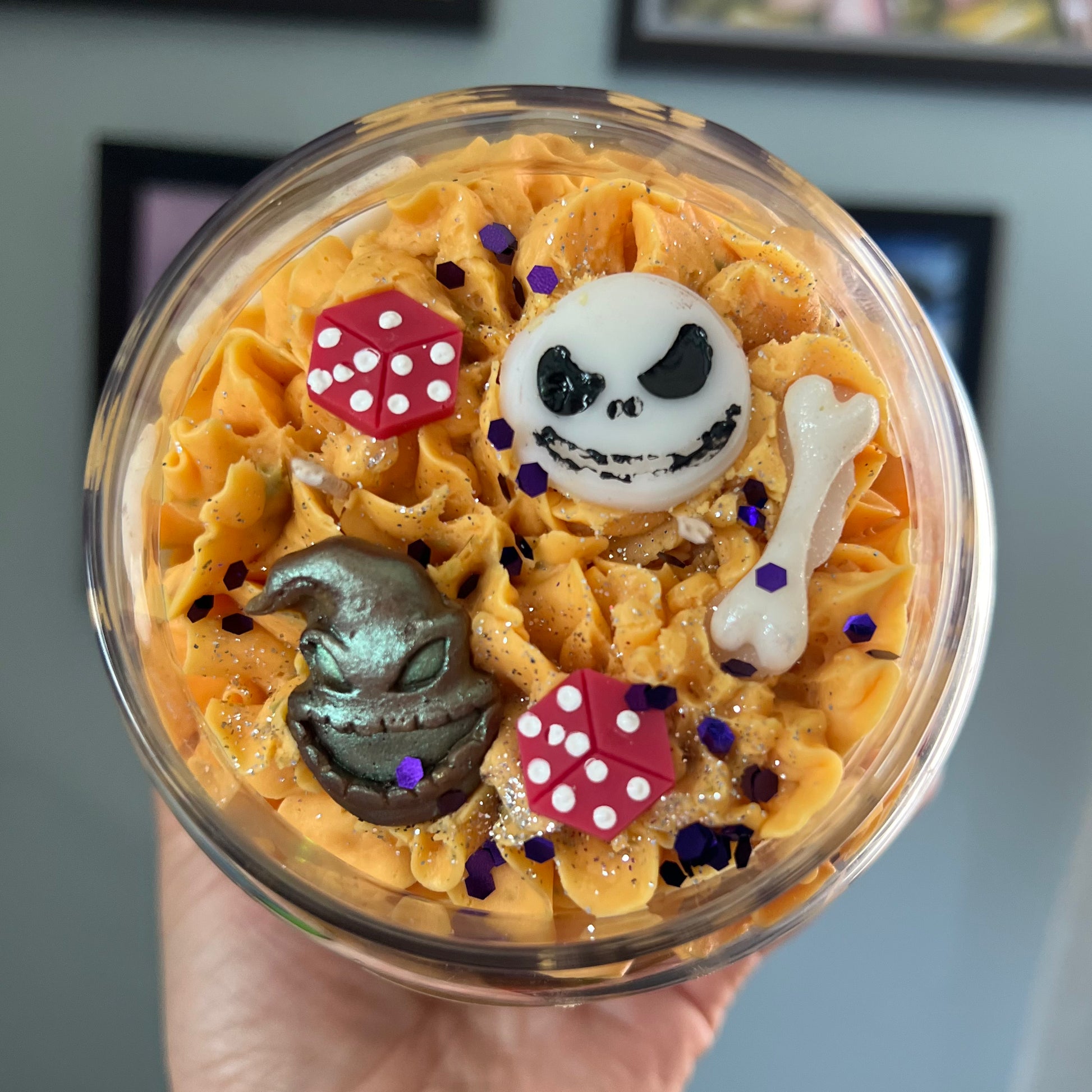 - Some of our candles contain decorative items. Please remove any decorations like dice and large sprinkles prior to burning