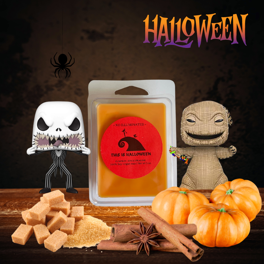 If you loved our Pumpkin King wax melts you will love these wax melts inspired by Disney's Nightmare Before Christmas, This is Halloween. Crafted with notes of pumpkin, molasses, praline, caramel, brown sugar, and nutmeg these wax melts will have your home smelling like Fall in no time! IT SMELLS SIMILAR TO OUR PUMPKIN KING WAX MELTS WITH A KICK OF SWEETNESS!